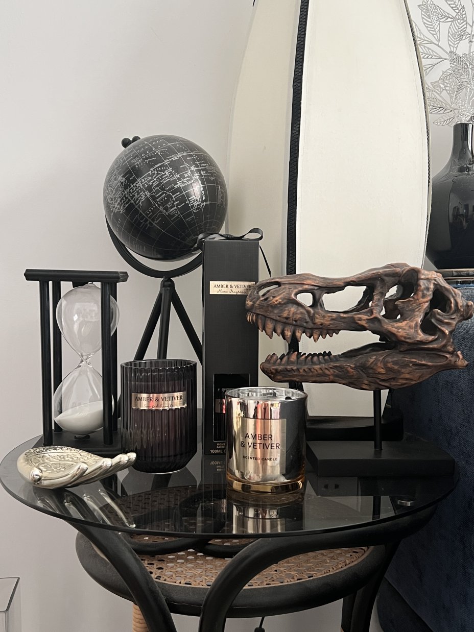 Step into this thoughtfully styled home nook, and you’ll immediately spot how classic decor accents weave together to create a space that feels both refined and full of personality—with the black globe at its core tying in a subtle global charm.